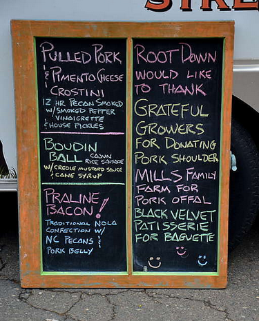 Hello Asheville! I got a lot of positive feedback re: my interview with Russ Keith from the Grey Eagle Taqueria (GET), so I'm glad people liked it! Here's my next one, with Dano Holcomb, the chef & co-owner of a food truck called the Root Down Food Cart.   I caught up with Dano at the Wedge Brewery where he parks himself every Wednesday night.  I've tasted Dano's food, and it was all really really really good.  The boudin balls were some of the most delicious deep fried things I've had all year.  Dano is a super-nice guy, and happily agreed to this interview.  He also let me inside the truck!  Yeah, Man.  STU HELM: Dano, my Man-o! Thanks for agreeing to do this interview! First of all, please tell the people who you are, what kind of food you specialize in, what is your background, and what makes your cooking unique in this town full of great eating options. DANO HOLCOMB:  Hi Stu.  Thanks for having me on the show.  Let's see.  My name is Dano Holcomb, Chef/ Co-Owner of Root Down food truck.  The other Co-owner is my wife Julie.  The kind of cuisine I enjoy making is a combo of Creole, Southern and Soul influenced food.  I am originally from Illinois and grew up in the Chicago area.  I learned how to get around in the kitchen from watching my dad and my grandfather cook (which was way before I ever wanted to make this happen professionally).  My grandfather (Mom's side) moved from Chicago to NC when I was young and we would take summer family trips to Tryon, NC to visit.  I think this is when I began to appreciate Southern food.  A few years later, my parents moved our family from IL to Tryon, NC as well.  I wound up going to undergrad at UNCA and played soccer there.  I stayed in soccer for many years and started coaching at the collegiate level.  However, the cooking food thing didn't grab hold of me initially.  It wasn't until I was 15 years into my coaching career that I decided to change and head to New Orleans for culinary school and  immerse myself into the incredible food culture down there.  After graduating, my wife and our two boys moved back to NC.  I worked briefly for Farm to Table pioneer Cassie Parsons at Harvest Moon Grille in Charlotte before starting Root Down (in Statesville).  We moved to Asheville in early 2014.  Asheville does have an abundance of talented chefs and great eateries.  As far as I am aware, we are one of very few places that heavily features New Orleans cuisine - especially Creole. STU: I met you at Geraldine's Bakery on Merrimon, where you get your bread for sandwiches, and then I saw you again a few days later at the Blind Pig event, "The Pig Lebowski," where you were helping behind the scenes. There seems to be a great sense of camaraderie, rather than competition, among the various chefs, restauranteurs, and food industry folks in Asheville. Is that an accurate observation? Can you describe your experience in the local food scene? DANO:  Firstly, Fred and his gang at Geraldine's are awesome and we get so many compliments on their bread.  Ok, back on course, I would agree with most of what you thought.  When that collaborative atmosphere is lucky enough to happen in a food town then the quality is allowed to flourish.  Much like NOLA, there are so many outstanding Chefs who are really showcasing their creative abilities in a relatively small town.  This makes you want to work harder and also appreciate your fellow neighbor's work.  It is humbling as well as gratifying.  This makes us all better.  As far as my experience so far?  Hmmm.  I still consider myself a bit of new comer.  I have been on the street here for 9 months and though I have enjoyed it,  I can become more visible in the community.  Many people have helped me make the transition to Asheville a comfortable one and I am very thankful for that.  Hopefully I can be as generous to others as they have been to me. STU: I've been to other cities where the food trucks are a major part of the food scene and seem to be tucked into allies and empty lots everywhere you look, but I've noticed that in Asheville, the food trucks are either parked in the lot of a bar, or in a designated food truck lot. Can you explain some of the rules and regs you have to follow as a food truck? DANO:  Yes, Stu, there are indeed certain rules for the food trucks and mobile food units in general.  For the most part, these rules are pretty understandable:  You may not park on just any street.  You have to have permission to park in a private lot.  You have to hold a permit for the places in which you do park.  You can't run a generator inside city limits because of noise.  We also are inspected by the Board of Health on a regular basis.  Some trucks require a commissary kitchen in which to prep (which is a 'home base' and a place to drain gray water, clean dishes, store food). STU: How's business? I noticed another gentleman, Dave, in the truck cooking with you? Who is Dave? An employee? Co-owner? Do you and Dave both make a good living doing the food truck thing? DANO:  Well I didn't really know what to expect.  Business is getting better.  I think there is still a mystique about food trucks and street food.  Some people are still a little unsure about accepting the truck scene as a number one go-to food option.  The food truck culture and fan base is growing slowly.  That is only my opinion and I am basing it on my experience in the Iredell County, Lake Norman and Charlotte areas, where we started out.  Yeah, Dave Hawbaker is great.  He is one of two main guys I have working with me.  He moved up from Charlotte to join forces.  Josh Daniel is my other guy.  He started out with me in Statesville and made the move to AVL in January.  These two are the nuts and bolts of Root Down.  Fantastic people and hard workers.  The Co-owner is my wife Julie.  She usually doesn't work on the truck but does a lot behind the scenes!  I have a couple other crew member