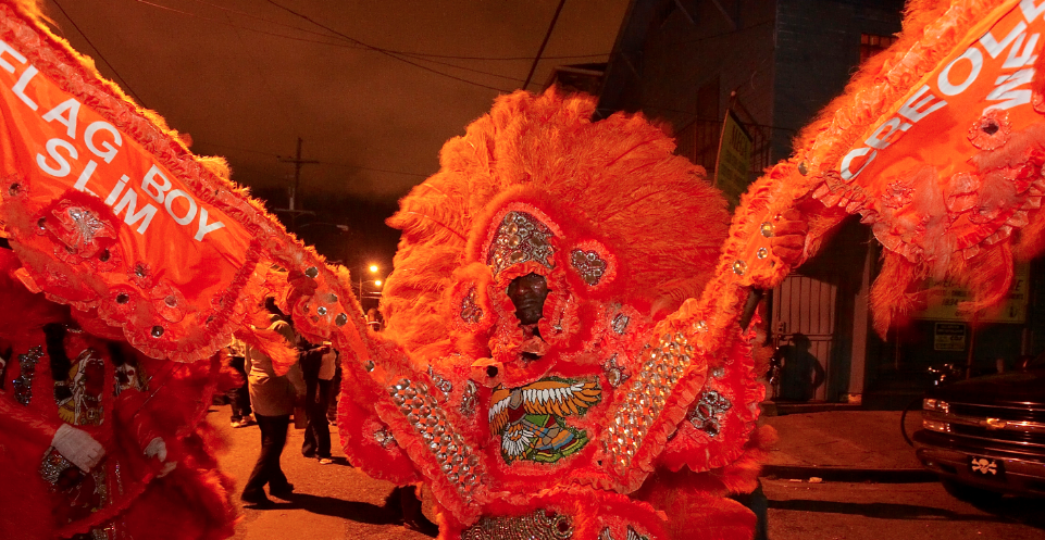 New Orleans’ Mardi Gras Indians — tribes that colorfully and fervently commemorate the mix of African-American and Native American resistance, culture and spirituality that has evolved into a stunning mix of ritual and performance.