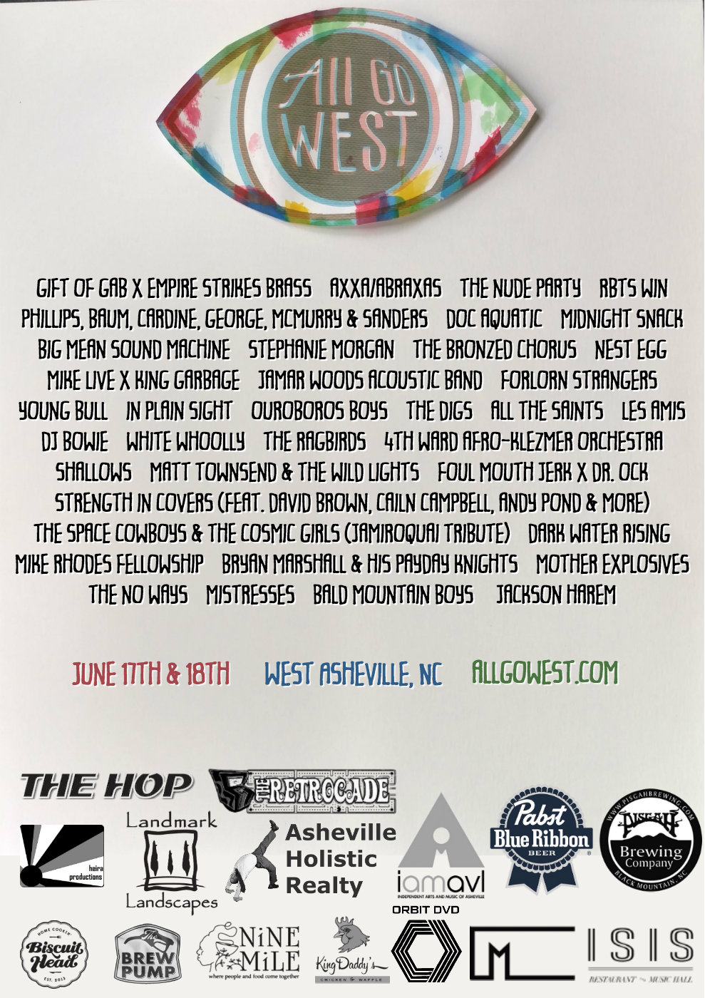 All Go West, the fest that features local talent (plus a few bigs names) happens at various venues and in the parking lots of Haywood Rd. in West Asheville on