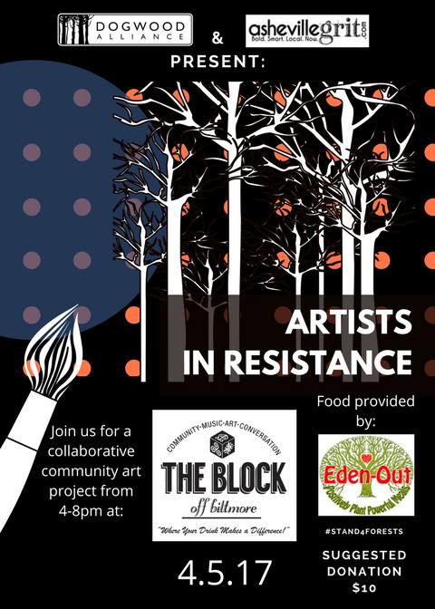 Here's the full scoop: On Wednesday, April 5th from 4-8 p.m., Dogwood Alliance and Asheville Grit will be co-sponsoring an Artists in Resistance event at