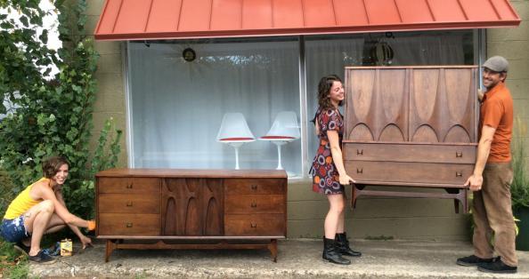 Todd and Megan combined forces having both been individual pickers of mid-century modern. Megan is an interior designer and Todd a carpenter and furniture restorer. Hannah, a Doula, brought her caring sense, natural style and handiwork skills in refinishing and upholstery. The trio combined and originally opened a booth in Screen Door, but success led them seeking wider spaces. They are now in Woodfin at 115 Elk Mountain.