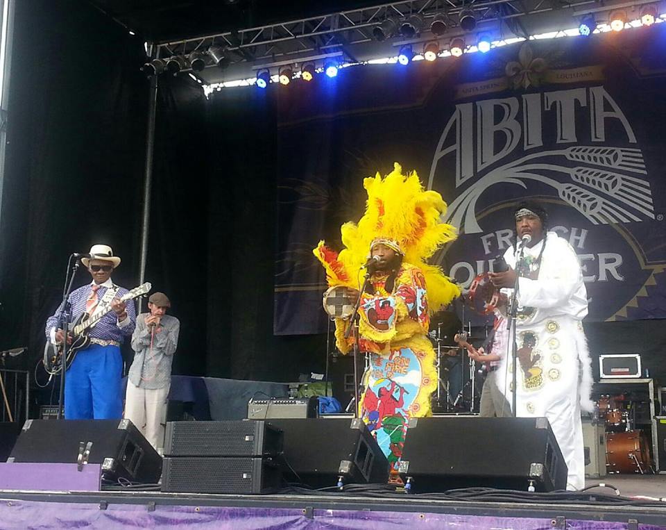Golden Comanche Mardi Gras Indians take the stage as the festival headliners. The