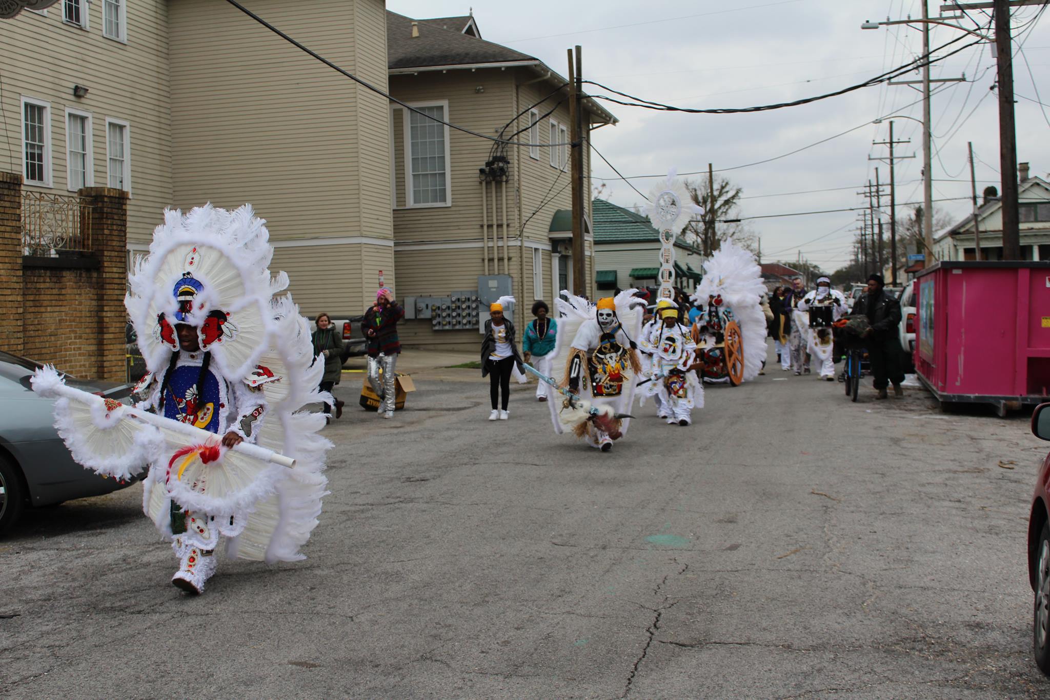 Mardi Gras Indians have been perfoming in New Orleans since before the mid-19th century and are influenced by African music, dance, and culture, Native American tradition, and the rich history of the Greater Caribbean. You can read more about the Mardi Gras Indians
