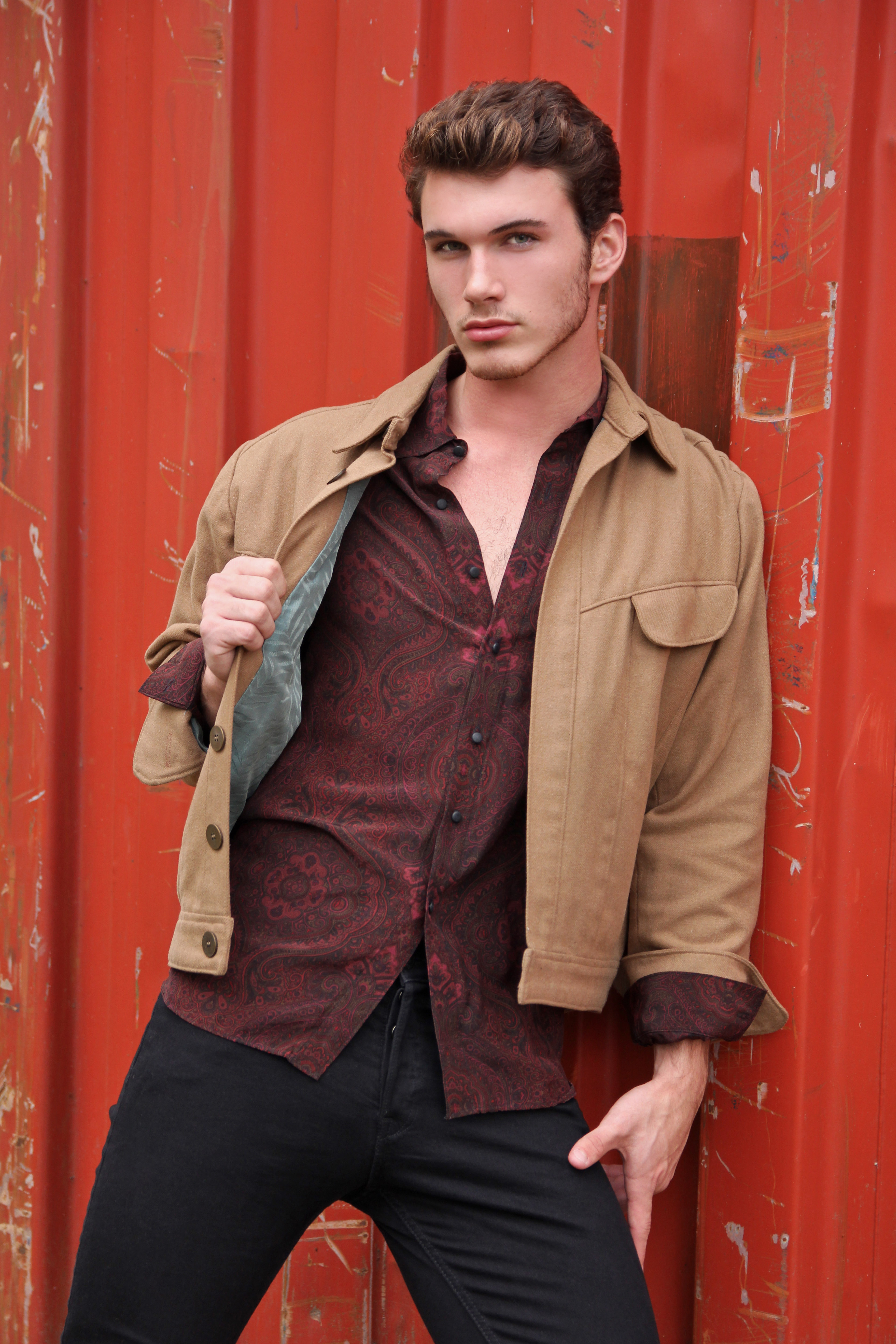 Wool Jean Inspired Jacket with Silk Paisley Shirt from the Charles Josef Bespoke Collection for Men. Model: Michael Y. with 6:12 Model Management. Photographer: 6:12 Photography by Eric McKinney.