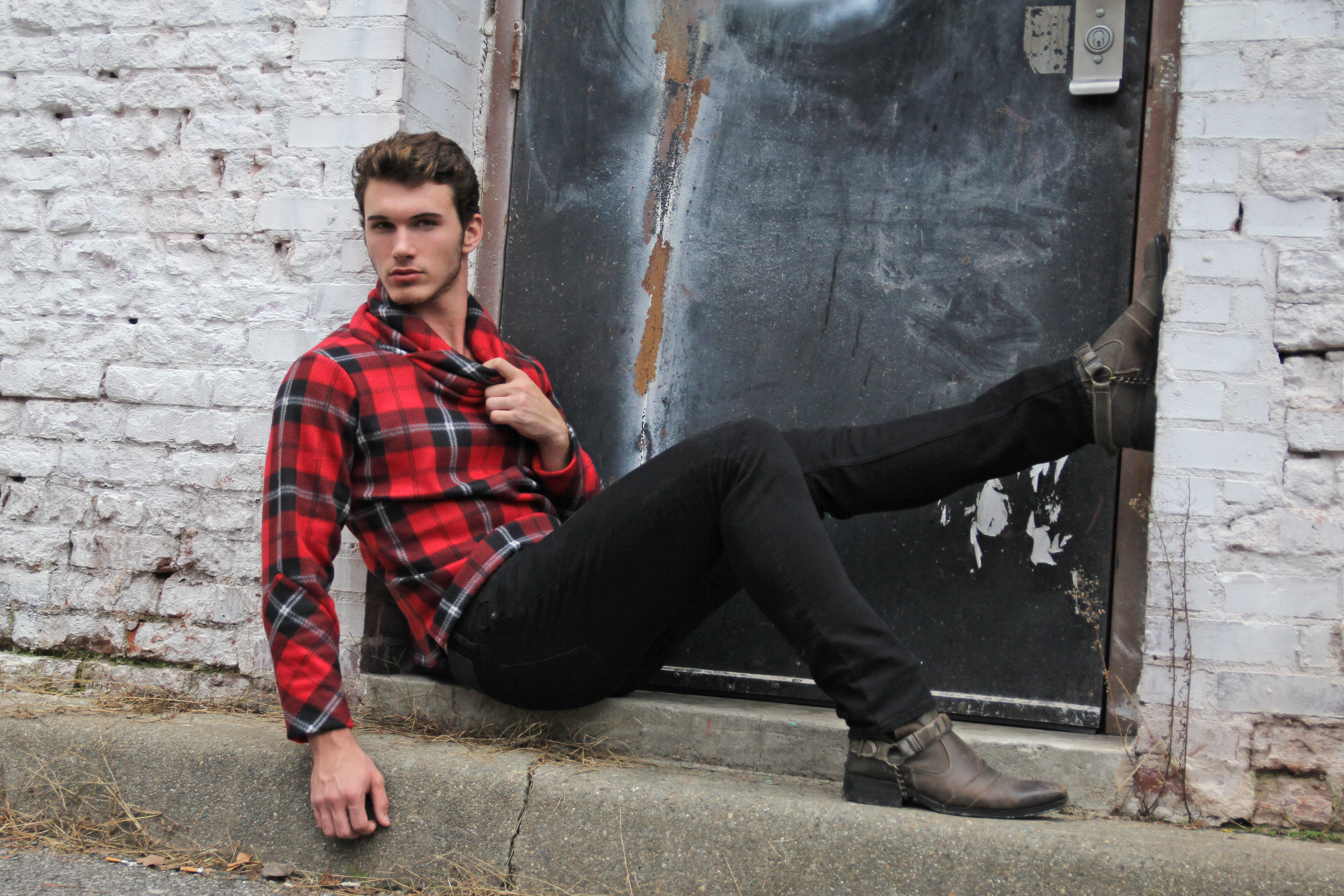 Men’s Cowl Pullover. Model: Michael Y. with 6:12 Model Management. Photographer: 6:12 Photography by Eric McKinney.