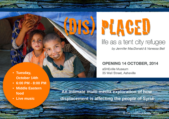 (DIS)PLACED - Life As A Tent City Refugee exhibit which opens tonight, Tuesday, October 14, 2014, from 6:00pm - 8:00pm and will remain through the end of the year.