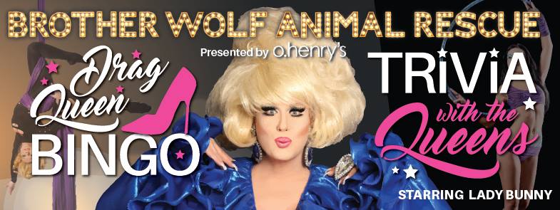 It's baaaack, y'all! Drag Queen Bingo benefiting Brother Wolf Animal Rescue returns for two nights this year on Friday, February 10th and Saturday, February 11th at the US Cellular Center. This event, which sells out every year, has added a night of trivia to the already sweet mix, which means that now you can have a double dose of glittered-up performance, dance routines, lip syncing, and prizes to ensure that you basically have the best weekend of your life.  Famed New York City Drag Queen Lady Bunny emcees this year's event, and with her will be an entourage of the most fabulous drag queens from the region. Lady Bunny has danced across the stage with the likes of the B-52's, Britney Spears, and Joan Rivers. She has graced the screen in Sex and the City, and she founded NYC's Wigstock, a drag and music festival.  If you want to get a little more Lady Bunny in your life (I mean, who doesn't?!), a VIP ticket this year includes a pre-show reception and private photo booth with the lady herself, plus catered food, a VIP-only bar, and the best seats in the house (right next to the runway).  Since this event is right before Valentine's Day, Brother Wolf and the Queens would love for you to make this the special occasion you and your date have been searching for. Bring romance, fun, flair, and glitter into your life with these saucy ladies, all for a great cause—the wonderful animals of Brother Wolf. One of our favorite moments last year was when a parade of Brother Wolf's adoptable dogs took their first spin down the runway, complete with costumes.  Both evenings will also include other performers, including aerialists, hoopers, stilt walkers, a photo booth, and the Blue Ridge Rollergirls. Food and drink are available for purchase at the venue.  The first night is the beloved Drag Queen Bingo, and the second night is presented by Brother Wolf and Geeks Who Drink, who will debut the first ever Trivia with the Queens. An after party, complete with drag performances and DJs, will follow the main events on both nights at O. Henry's, also a sponsor of the event. Tickets for the event, which starts at 10 p.m., are sold separately. All proceeds will go to Brother Wolf, which plans to begin work on a new 85-acre sanctuary in Buncombe County this year. Whether you bring your (human) forever friends or decide to fly solo, Brother's Wolf's Drag Queen Bingo + Trivia Night will bring a little magic into your life. Tickets are on sale now for both nights. Check back with the Grit, because we'll be giving tickets away to some lucky winners starting this weekend!  For tickets and pricing, click here. Facebook event page here.
