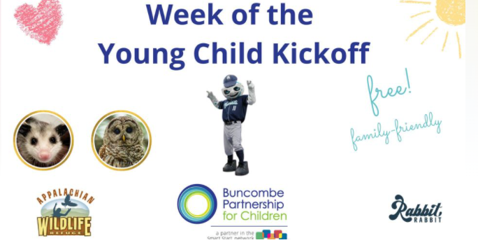 On Saturday, April 2, the Buncombe Partnership for Children will be having their Kickoff Event from 10:30 a.m. - 1:30 p.m. at Rabbit Rabbit (75 Coxe Avenue). They will feature live wild animals from the Appalachian Wildlife Refuge, along with arts and crafts, giant bubbles and a screening of the movie Moana. The Asheville Tourists' Mr. Moon will also make an appearance. The full event listing for the Week of the Young Child is at https://buncombepfc.org/week-of-the-young-child/. Families can sign up and get updates about this event at: https://www.facebook.com/events/351342906940550. The event is free!