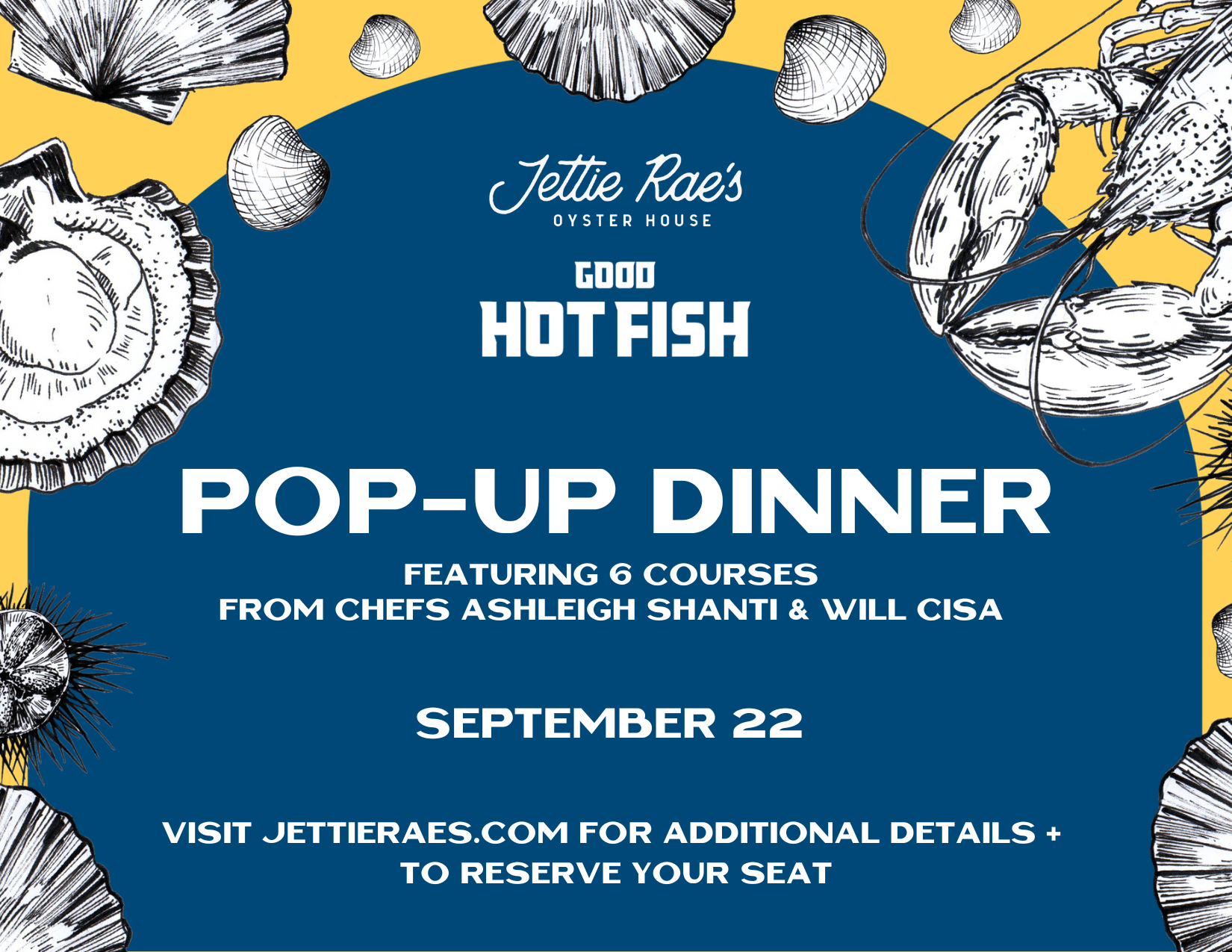 Shanti is joining forces with Chef Will Cisa and the team at Jettie Rae’s Oyster House on Thursday, September 22 for a collaborative pop-up dinner. The chefs have developed a six-course tasting menu with carefully selected wine pairings, featuring dishes like Caviar and Catfish with Sunburst Farms trout caviar and Deviled Bronzino with fresh lump blue crab. Reservations for this ticketed event and the full menu are now available HERE.