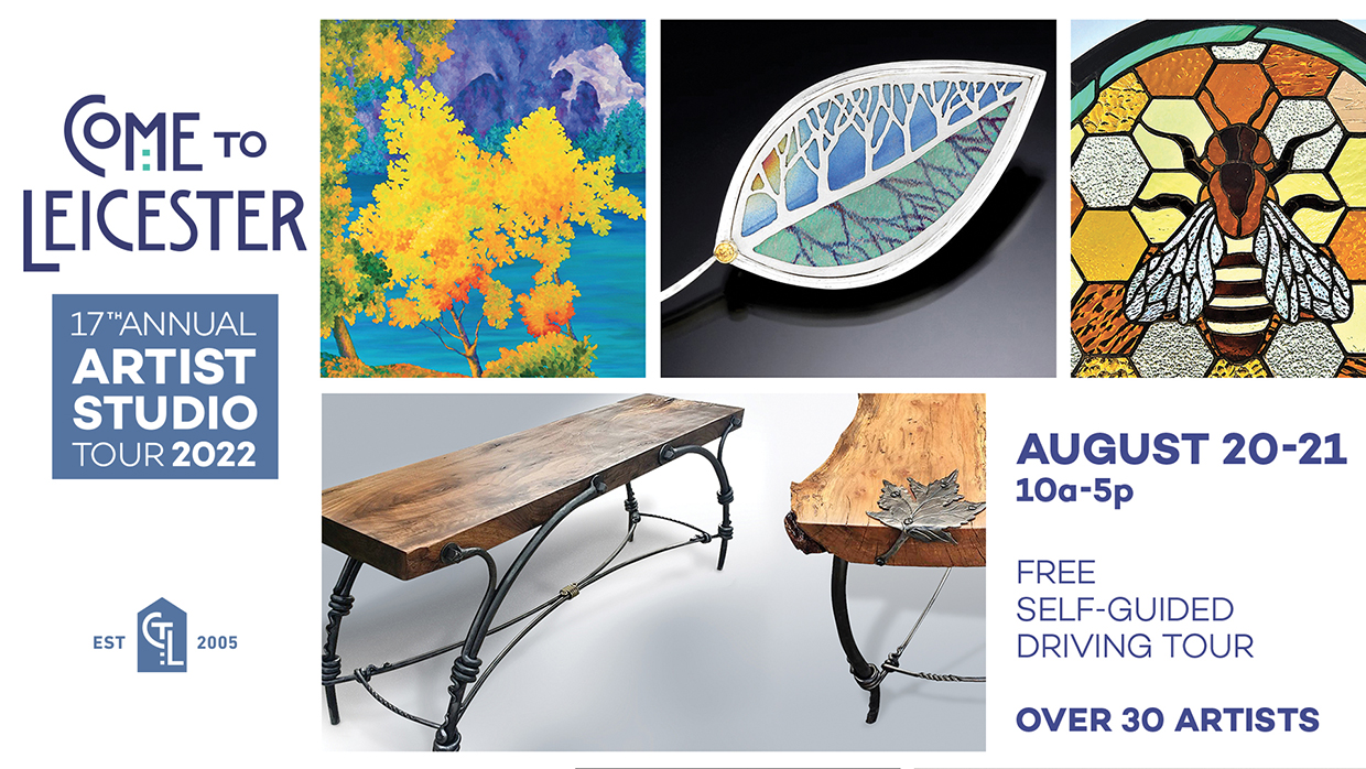 17th Annual Come to Leicester Artist Studio Tour:  10 AM – 5 PM, August 20-21.  Artists in the small community of Leicester, NC open their studios to the public for this free, self-guided tour.  Visitors choose their own tour stops using detailed brochures with maps and signs along the route directing to the individual stops.  Visitors will find many types of fine art and crafts, including brooms, pottery, paintings, iron work, jewelry, fiber, stained glass, mosaic, enamel, and mixed media.  Visit their website to see the artists and print a map.  http://www.cometoleicester.org