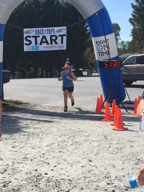 The Ice Cream Truck Chasers) and to say that I was going to run a race! The race started at Oskar Blues in Brevard at 11 am. I got my number and my swag and I was ready. Two hundred and five racers congregated behind the start line, our team towards the back. The gun went off and we all began to move in a clump like sheep whose farmer has just opened the gate to a grassy, open field where there are copious amounts of grass to eat. Except we wouldn’t be eating grass—we would be running for five long miles. I started to panic a little at the thought of the five miles that lay ahead. How was I going to run for five miles? I hadn’t even run that often before this race, and here I was trying to run with real runners. I talked myself down and tried to stay in the moment. After mile two, I was feeling the strain, my body was getting tired, and I was starting to alternate between running and walking. But I kept going. I was neck and neck with Maggie, a girl on my team, and she encouraged me by letting me know what mileage we had and by telling me keep pushing. I finally saw the finish line. I finished at 51:30, 116 out of 205 racers.