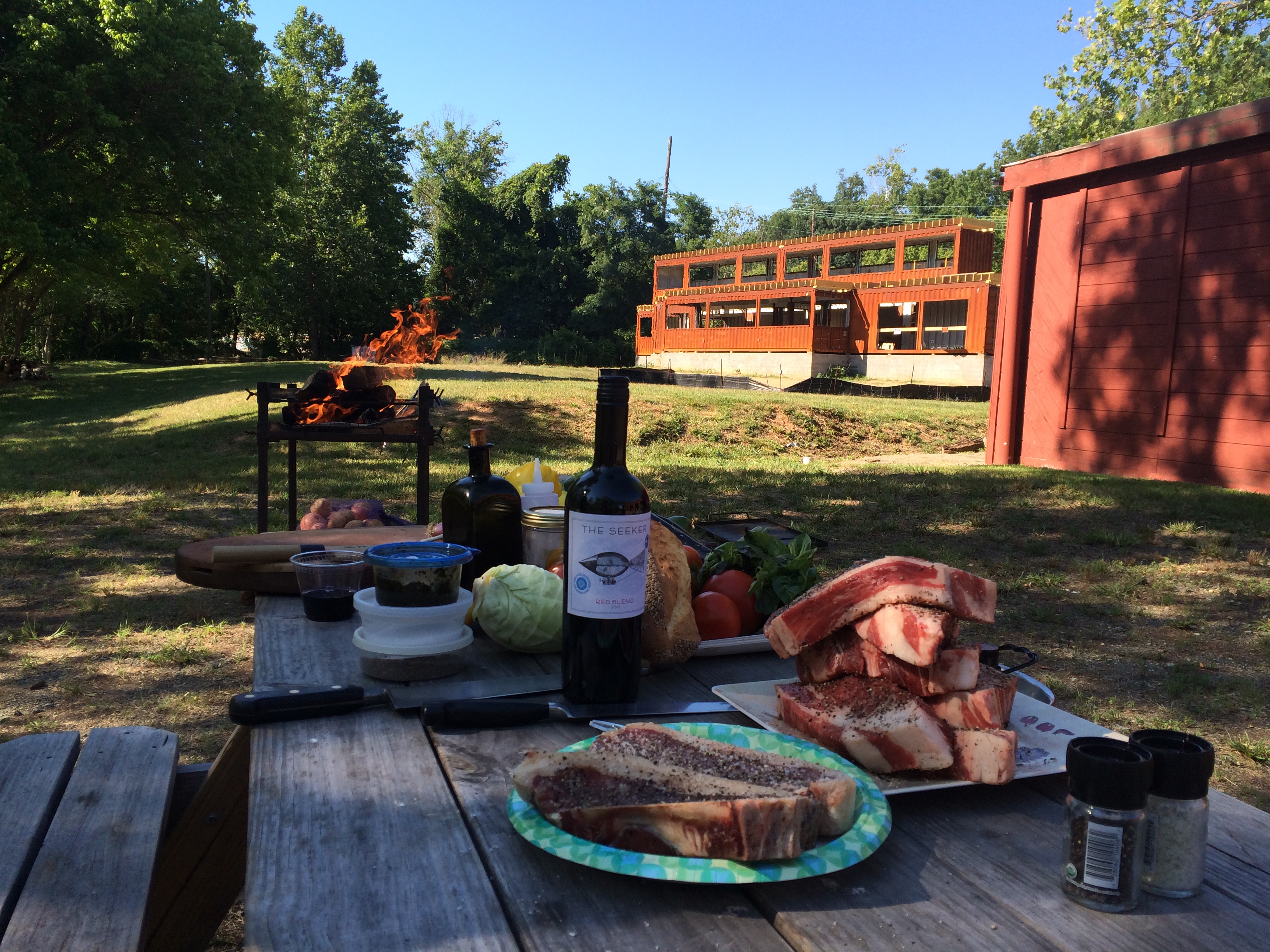 Mark Rosenstein prepared a menu testing/tasting feast at the soon-to-be-open Smoky Park Supper Club   Farmer and Chef South Digs Deep: Into the Fire with Chef Mark Rosenstein by Christine Sykes Lowe There have been numerous opportunites and experiences where I feel fortuntate to have been a part of the process, if only to bear witness. Flames dancing, ash circling the air – a determined but fixed expression of pleasure on his face. Chef Mark Rosenstein, largely regarded in Western NC as a leading pioneer in the local food movement, is at his best when he is creating and cooking, with fire. From delectables emerging from a stone hearth pizza oven he lovingly helped craft by hand, to a wood-fired Argentian grill or “infiernillo” roasting dozens of tomatoes at peak of harvest – Iʼve seen and tasted it all. The flavors are uncompromising and shows his mastery on every level. Did I also mention he is also an artisan of homemade fireworks? Of course. It only makes perfect sense. As a big contributor to Farmer and Chef Asheville, including writing the foreward that goes in-depth on the relationship between earth and table, we are honored to highlight his focused passion through a Q+A and a recipe featuring wood-fire cooking.   Christine Sykes Lowe: Where did you start your love of cooking with fire begin...is there a specific influence? Mark Rosenstein: Cooking and cooking with fire started together, so this goes back 40+ years. Even though some of my cooking delved into the modern and complicated, in my core, I appreciate and practice simplicity. This simplicity dictates “fire”, as it is elemental and direct. Any specific influence really is all the general influences I have had – a Native American teacher, naturalist and mentor when I was in elementary school, some of the mountain folks I lived amongst when I moved to Highlands, NC, meals around the firepit with the sophisticates who were my clients in all my restaurants, and the timeless adventures I have had in my own yard, around my own fires, poking embers and rescuing tasty bits before they burned. Rostenstein getting ready to play with fire    Christine: Tasty bits indeed. Do you think this cooking style is hard to perfect? Mark: Cooking “elementally” is the most difficult to master, and the most difficult part is self-discipline: being mindful and present; fire is constantly changing, no two pile of burning wood is ever the same. You cannot write a recipe that says, “cook on high heat for three minutes” - as this can be meaningless. It is also difficult to master because you have to start by building the fire, or even before that, have collected the wood or made the charcoal. The process requires more time and most of us have become habituated to “quick and easy”. Take the use of a retained heat (wood-fired bread oven): the process begins days before you want to cook, building stored heat through constant “burns” over hours and days. A loaf of retained heat hearth baked bread is an act that never stops.   Christine: What are you working on personally and jointly right now? It always seems you have your hand in something new and exciting. Mark: I am helping develop the menu and plans for Smoky Park Supper Club, a restaurant that will be opening in Asheville later 2015. Wood fires will be the primary source of cooking heat. Beyond that, truth be told, actually most of what I am working on is “old”, in the sense that I continue to delve into the relationship that I have with food. I have picked up the threads of an earlier project with my youngest daughter. We are once again working on the “Bennie and Boomer” story, which is our conversation about all the things that affect us, as we cook together and eat together. Our intention is to bring this to life through a web-based comic/video/story. I am also continuing to work a book about spices “The Little Book of Spice”, conceiving it as series of monographs about individual spices as well as about blends.   Christine: I can see how that “Little Book of Spice” would be a great accompanientment to any kind of wood-fire cooking... so as we round this up---your philosophy on food, and coming to the table– you touched on this in your intro for Farmer and Chef Asheville. Can you sum it up for us? Mark: In a nutshell, the relationship we have with food is exactly the relationship we have with our family, our friends and our community. This food relationship is the basis of how we interpret (using interpret in the sense of “a way of behaving”) everything else we do, think and see. A quick example is: do you share food with strangers? At a restaurant, would you casually or randomly offer something to the table next to you or at the bar? Do you share food at home? And the such. Brillat-Savarin said, “tell me what you eat and I shall tell you who you are”. I would add to that,”tell me how you treat food and I will tell you how you love” (or some such nonsense...)
