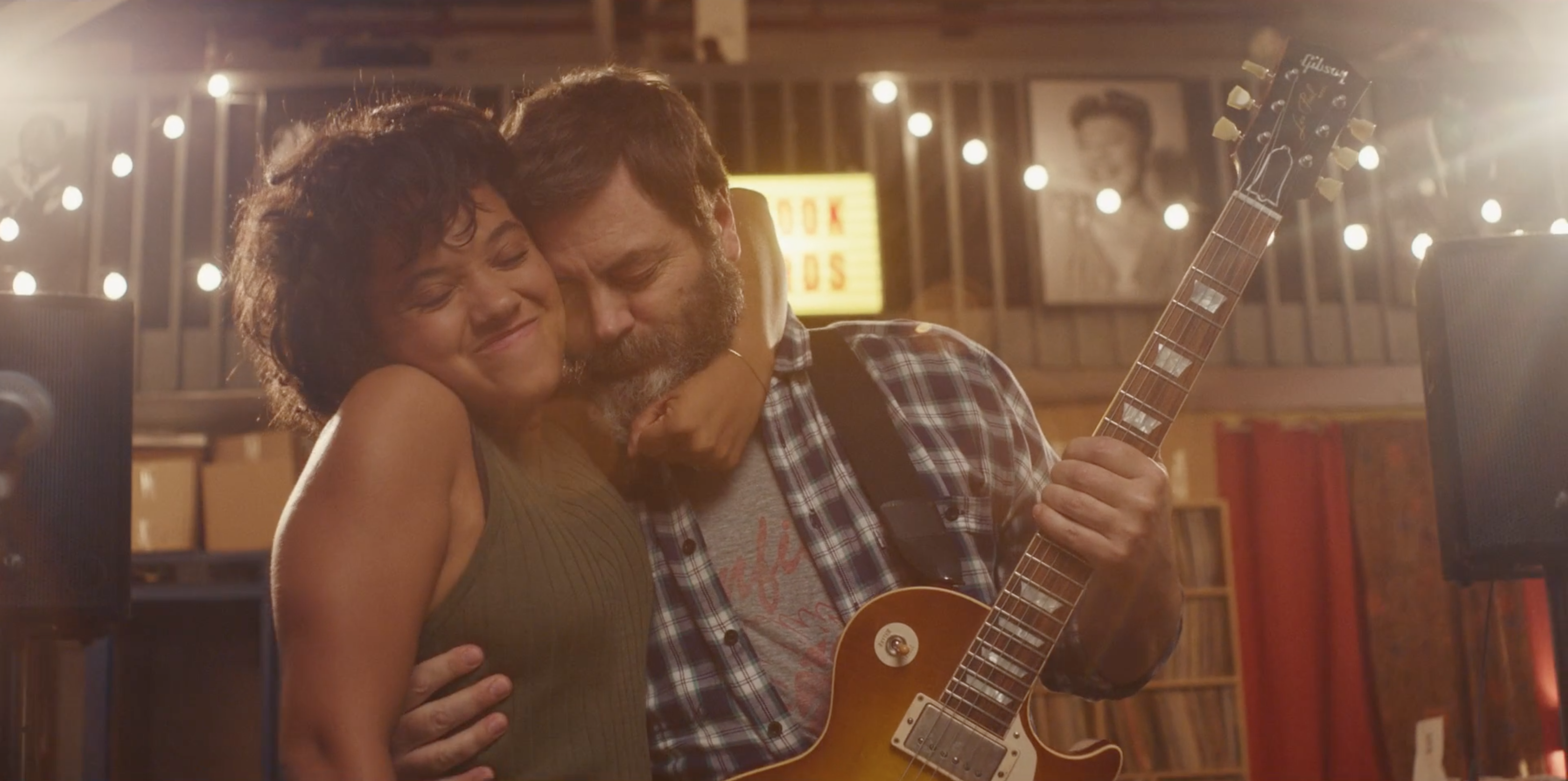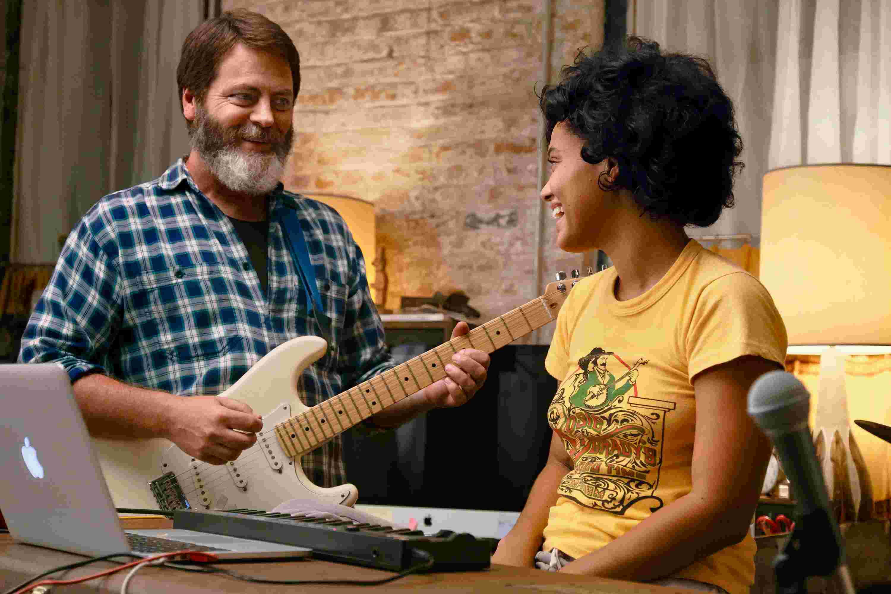 As the father of a young daughter, I found Offerman’s portrayal of a loving, scared, and nostalgic dad with his head in the clouds refreshing and relatable. I easily identified with him. He’s immensely proud of what has daughter has grown into and wants nothing but the best for her, but he also lives somewhat vicariously through her talent as a songwriter and a singer. He never made it as a musician, but she could if she wanted to—giving him the opportunity to finally live his dream. He’s a good dad, if a bit out of touch (his “dad” wardrobe and embarrassing behavior is spot on), but his plan is not well thought out, or even practical. It takes his daughter to point much of this out to him, and he’s embarrassed to have even suggested it. Positive, realistic dads who are capable of change—I like it.