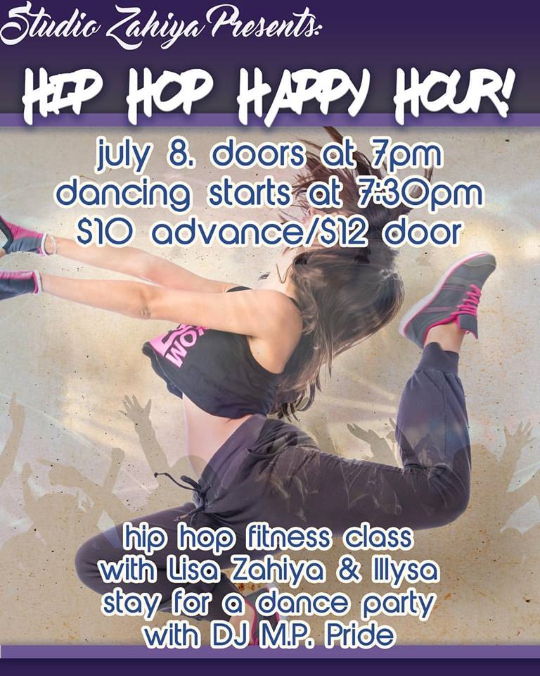 Hip Hop Happy Hour, happening at the Orange Peel on Saturday, July 8th. This event, organized by Studio Zahiya's