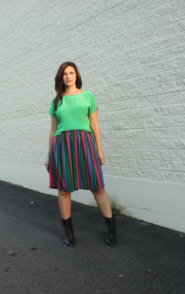 Outfit details: Top & Skirt: Thrifted locally in Asheville, Boots: Steve Madden via Dillards @ Asheville Mall (last year), Necklace: NY&Co @ Asheville Mall (store now closed)