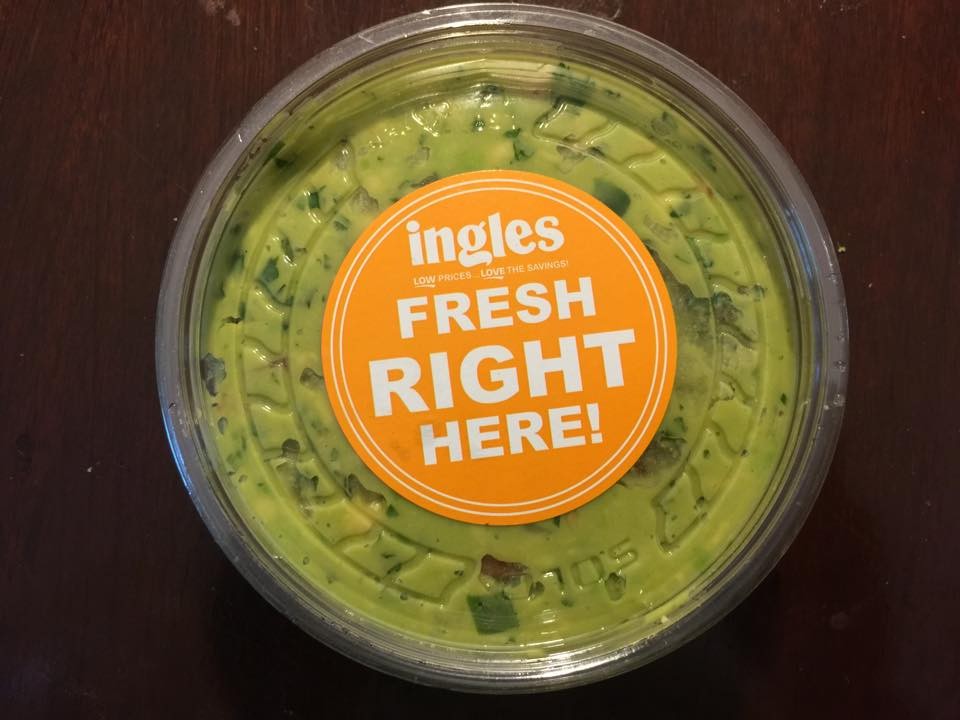 I wouldn’t have suggested “Meatless Monday” if snacks weren’t involved. I don’t know about you, but I am all about the snackage. I like grown people snacks though. Carrot sticks w/dressing or 12 grapes and apple slices don’t do anything for my hunger or attitude.  Ingles is a great place to not only grocery shop, but to get snacks. They are affordable and they have a large selection of meatless choices. This is my go-to place if I need to cut my lunch time in half. Most Ingles stores carry raw and roasted nuts, fruits and juices. Plus, they have a salad bar. These are all quick, easy, and healthy options if you are in hurry. I am from Alabama, and I had never encountered an Ingles before I moved to Asheville. At first glance, it looks a lot like all the other large chain grocery stores, and in a lot of ways it is. However, there are some subtle, beautiful differences. For example: they have a certified dietitian [Leah McGrath] giving out healthy eating tips over the intercom as you shop, like one about rinsing off your appropriate canned goods when you open them to wash away a large percentage of the sodium. They also sell a lot of local foods; I notice that they normally bring local produce to the front of the store. At the end of the day, Ingles is convenient. There is one in just about every neighborhood. Although I shop at the tailgates, co-ops, and other vegan trendy hot spots, I still have love for my neighborhood Ingles. My favorite snack from Ingles right now is their guacamole. It is made fresh daily at select stores around the region. It is the best guacamole I have had in Asheville thus far. It comes in mild and spicy, and there are so many beautiful things you can with it. You can have it at your desk with chips, pita bread, or raw crackers. Or you can really style it up like I do.  Either way it is still very good.