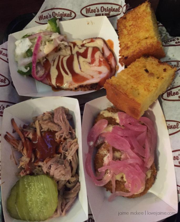 Moe's is also known for their fairly traditional southern sides, which my southern husband was all about. I couldn't get enough of the mac & cheese and the skillet corn. The husband was all about the jalapeno cheese grits, which I even enjoyed and I'm not normally into grits. They also had fried green tomatoes which were fantastic. Their corn bread? Worth every spicy bite.