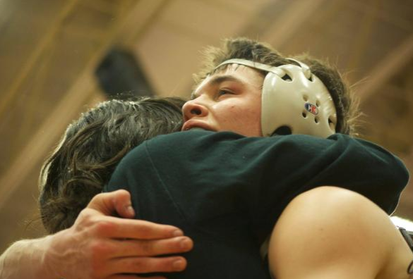 Aydan Arroyo hugging his proud dad   My posts have been and usually are art related but this post is a special one to me and not related to art at all. Last weekend my son Aydan Arroyo won second place in the North Carolina High School State Wrestling Championships in Greensboro, North Carolina in the 3A 126 lb. weight class representing the North Buncombe High School BlackHawks. He also won the 3A Western Regional Championship the weekend before to qualify him to go to the state tournament. He is the only wrestler in North Buncombe High School history to win the 3A Regional Tournament and make it to the finals in the State Championship as a sophomore. His teammate junior Peter Simonovich won fourth place in the 182 lb. weight class at the State Championship and also won first place in the Western Regional Tournament. Other BlackHawk wrestlers to make it to the State Championship were Michail Simonovich (the 2014 220 lb. state champion pictured above) who won first place at Regionals, senior Taylor Rozinski who got second place at Regionals and Dylan Courtney who won third place at Regionals. The Citizen Times has some great pics of the Western Regionals with some of the boys in them which you can check out here.  The BlackHawks also won the Mountain Athletic Conference Tournament a few weeks ago as a team where Aydan, Michail, Peter and Logan Anderson won their respective weight classes as well. I can't express how Super Amadeus proud I am of my son and the NBHS Black Hawk Wrestling Team for having an amazing 2014-15 wrestling season. Congrats boys!! Thanx to Steven Brown for the wonderful pics of all the boys this weekend!!!! Aydan Arroyo stands at his second place spot on the podium