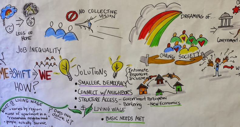 Dynamic Facilitation practitioners, with a large community of leading-edge authors and professionals living in and around Asheville. The Dynamic Facilitation process helps people face and achieve breakthrough progress, turning the energy of conflict into an asset, frustration into empowerment, and assuring that people will listen to one another with interest while developing a unity that is resonant in the whole community.