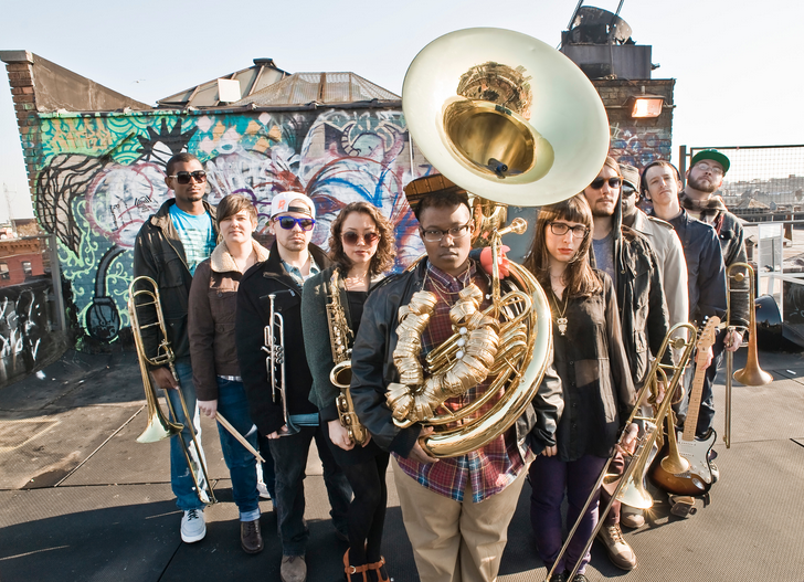 Empire Strikes Brass, another many piece brass band with multiple influences. The bands have been able to develop a working relationship as they’ve played shows together over the years, Sholl says.