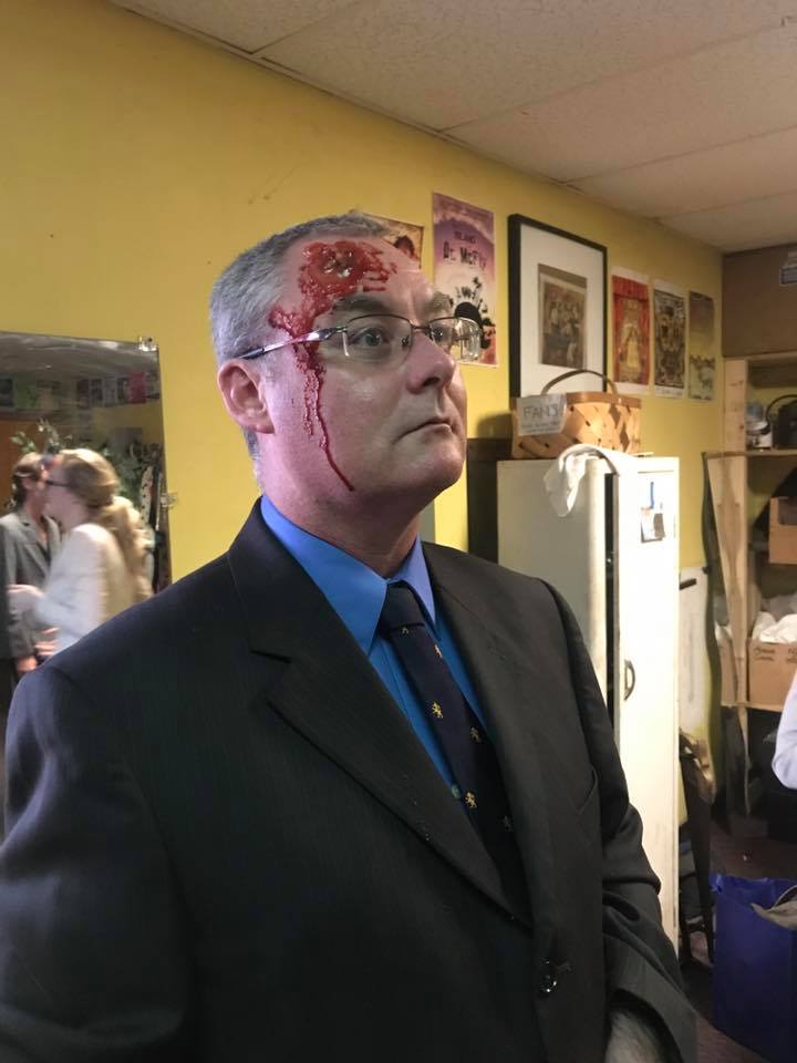 Photo Credit: Kevin Norris For anyone not familiar with Toy Boat or Anam Cara Theatre Company, the two entities seem to happily exist outside the margins of the mainstream and make the most of their resources and the wide range of creative talent abundant in Asheville. With only two chances remaining to catch Prairie Fire at Toy Boat Community Arts Space, this review hopes to help in filling any remaining seats this Friday and Saturday night. Prairie Fire begins with our cast arriving to “The Board Room” for the 9am meeting and then slowly establishes the tone and themes of this original work written by Ryan Madden and directed by Peter Lundblad. The “play” is a deconstruction of sorts, with a series of loosely connected vignettes that flirt with and ridicule various subjects like corporate identity, advertising, religion and capitalism. The distinguished cast of actors includes George Heard, Margo Matty, Kevin Norris, Alison Tippins, and Sophie Stanley, and in Prairie Fire they all get numerous opportunities to showcase and stretch their acting chops by slipping into various personas and costumes from scene to scene utilizing various accents and idiosyncratic quirks. They all deserve to be commended for meeting the demands of Madden’s script, which is a finely crafted piece of superior wordsmithing. One of my favorite aspects of the play is its mixture of recurring gags, absurd diatribes and unpredictability. The scene between Alpha, Beta, Gamma, and Omega features a hilarious series of terms of mock-endearment riffing off the common “sweetie” or “honey” to “saccharine genitals” and much, much more. I wish I had a list of them now, because it was immensely fun to hear how many more and how outlandish and bizarre the next one would be. I always try to avoid describing too much or revealing anything that could be considered a spoiler, so I’ll just add a few more details about Prairie Fire. It’s a dark comedy featuring some deaths, overt Baywatch references, voiceover narration, title cards and bloody foreheads but is still suitable for teenagers. It’s also got reptilian overlords! That was unexpected for me although I later noticed that it is listed in the program for the show. Mr. Madden, thank you. I sincerely request that you send me a list of your most outrageous and amazing terms of endearment from Prairie Fire to re-print in it's entirety here on Asheville Grit and encourage others to add their own!    For tickets and more details visit www.anamcaratheatre.org Tickets $16 advance, $20 at the door Toy Boat Community Arts Space 101 Fairview Rd, Asheville NC