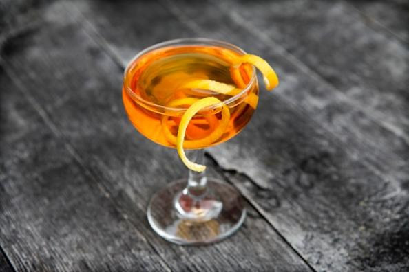 Abbott's Bitters which are basically extinct. I just substitute a whisper of Angostura, and around two drops Boker's Bitters, which can easily be purchased locally. If you can get past all of those obstacles, the drink is quite simple: Stir Rye Whiskey, Lillet Blanc, Apple Brandy, Chartreuse, and bitters on ice and strain into a chilled coupe. Garnish with an orange twist rubbed around the glass.