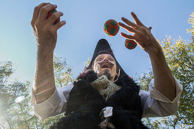 Lucy Luke and Meridy, who are a circusy/vaudevillian team, Lucy's an insane juggler who just came out as trans, and I'm so excited for her to be doing her first show as a she, it's perfect timing. Meridy is this Amazon woman who plays the accordion and the harmonium. So she plays weird circusy stuff and Lucy does incredible juggling, some of the best I've ever seen--and I'm coming out of the circus community in Oakland. And she's dressed as a teddy bear!
