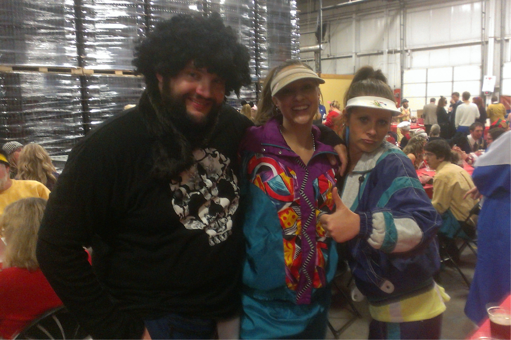 Keller Williams and Highland, about 900 attendees took over the brewery’s tasting room dressed as comic book heroes and villains, Saturday morning cartoon characters, movie stars, purveyors of tacky holiday sweaters, and all around anti-style style. (Just check out the smashing set of sisters and sassy sidekick in their 90s windsuit fineries above.)