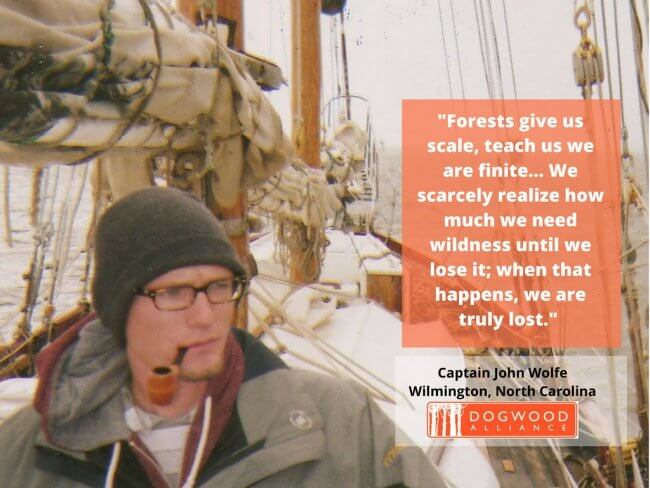 Captain John Wolfe, a writer, and activist in Wilmington, said most poignantly, “Forests give us scale, teach us we are finite. We scarcely realize how much we need wildness until we lose it. When that happens, we are truly lost.”