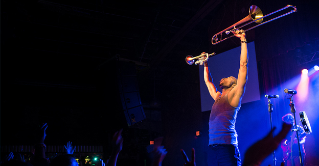 Three New Orleans acts came to Asheville recently, with more to come before September’s over. Dumpstaphunk, fronted by Ian and Ivan Neville, played a rousing set at the Orange Peel, but got off to a rocky start. (When your tech is on stage as much as the band, that’s a problem.) But once they got things working, it kicked into full gear with Tony Hall and Nick Daniels III pounding out dueling bass lines that shook the venue. However the surprise of the night was the opening act, the AJ Ghent Band. The band played a set of crisp soul, blues, and rock, fronted by fingerstyle slide guitarist and singer AJ Ghent. Dressed to the nines, he sang and played effortlessly on his Epiphone and a beautiful custom 33:3 8-string Tele guitar (guitar fetishists can see a photo set of the making of that guitar here). His style mixed an old-school feel for songwriting with a modern lead playing that at no time felt incongruent or forced. I only wish more people had shown up to see him. [Note to young Asheville: Why?! Why do you spend your hard-earned cash on a show, and then arrive only for the main attraction? When doing so means you end up missing surprising acts like the AJ Ghent Band, it borders on criminal negligence of your well-being.] The highlight of my week was the Trombone Shorty concert on Tuesday at the OP. I had seen his cameos on Treme (here’s the band playing on the season 4 premiere), but at the Orange Peel they displayed a level of energy not captured in those performances. The group was really fired up, in no small part due to the great reception that he received from the packed crowd. Sister Sparrow & The Dirty Birds opened (they’re going to be back, at New Mountain, in November). The third N.O. band, 101 Runners, came to New Mountain for the after party of the first day of the Goombay Festival. The first set had them all in street clothes, but for the second set Juan Pardo and Isaac Kinchen of the Golden Comanches came out in their full Mardi Gras regalia. Youtube user “I Am Asheville” recorded much of both sets. You can see two clips below.  You can see more photos from the Dumpstaphunk/AJ Ghent Band show here, and more from the Trombone Shorty/Sister Sparrow show here. And there's even more N.O. music coming up this month!