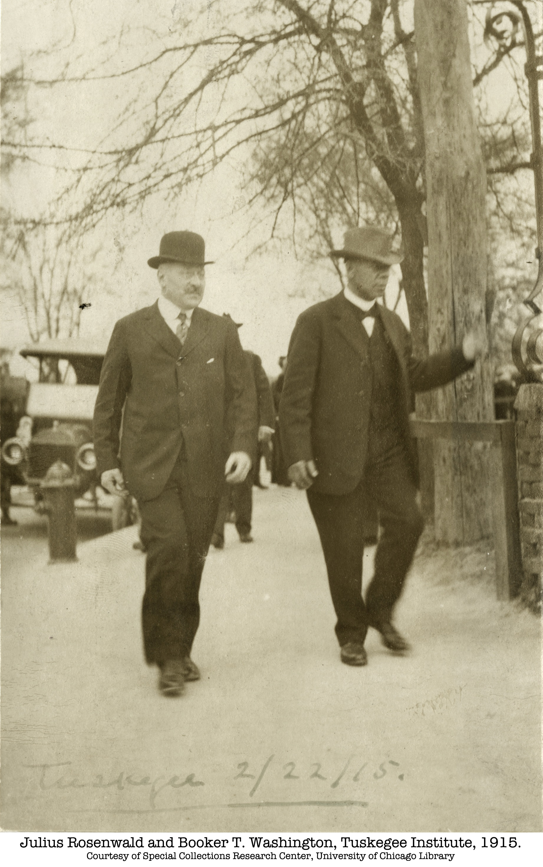 Historical photo is from press kit of the documentary film, "Rosenwald." - Julius Rosenwald and Booker T. Washington, Tuskegee Institute, 1915. Courtesy of Special Collections Research Center, University of Chicago Library.