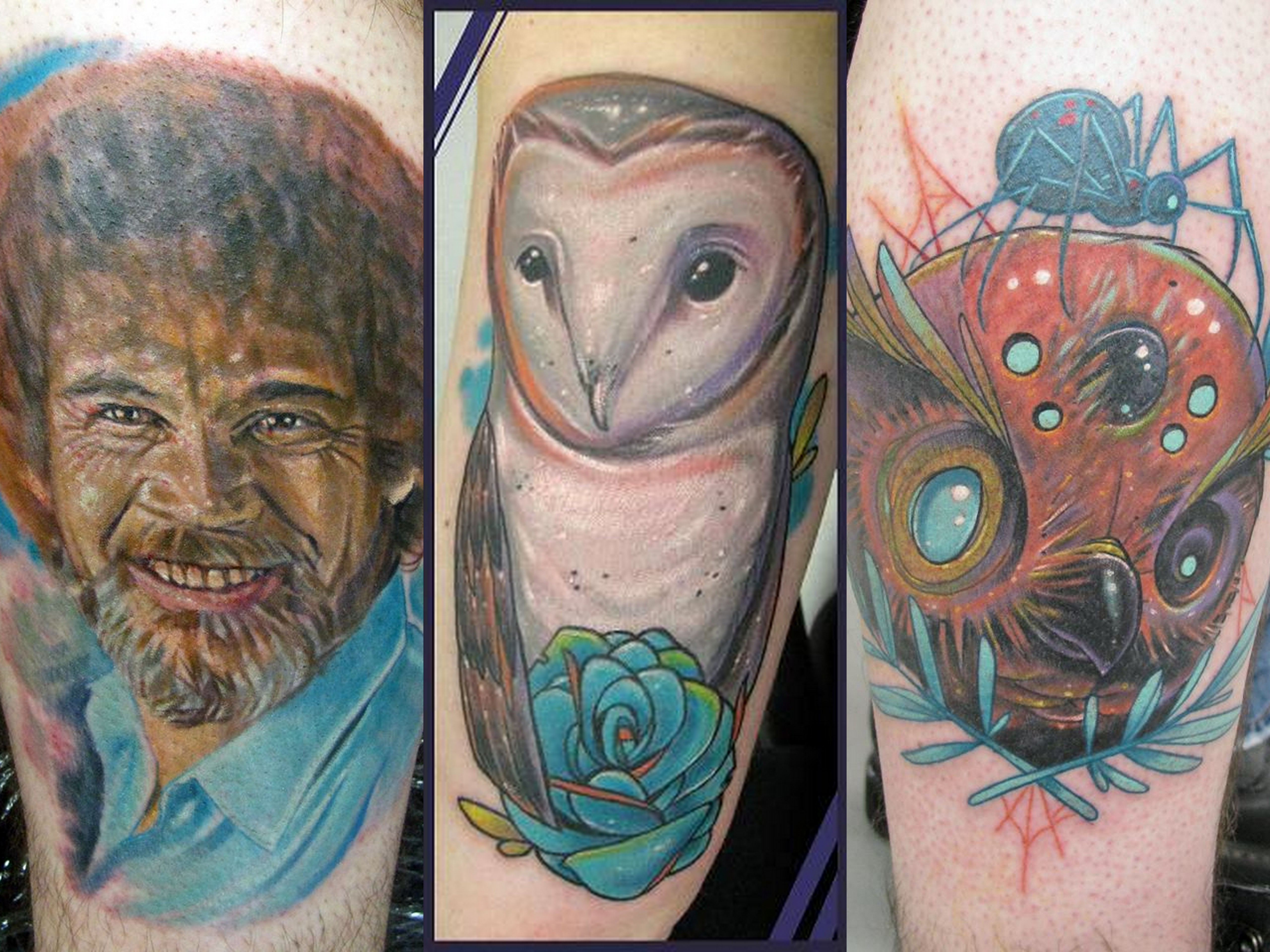 portfolios and make sure their style is really what you’re looking for before you commit to a piece. You can even ask if they have a better recommendation if you want something specific like a portrait of your dog or a vase of sunflowers in that bright, splashed watercolor look. Another tip: Don’t get lengthy tattoos that someone would need to stand and read for several minutes. They’re hard to decipher and “no one really wants to read your tattoo, man.”