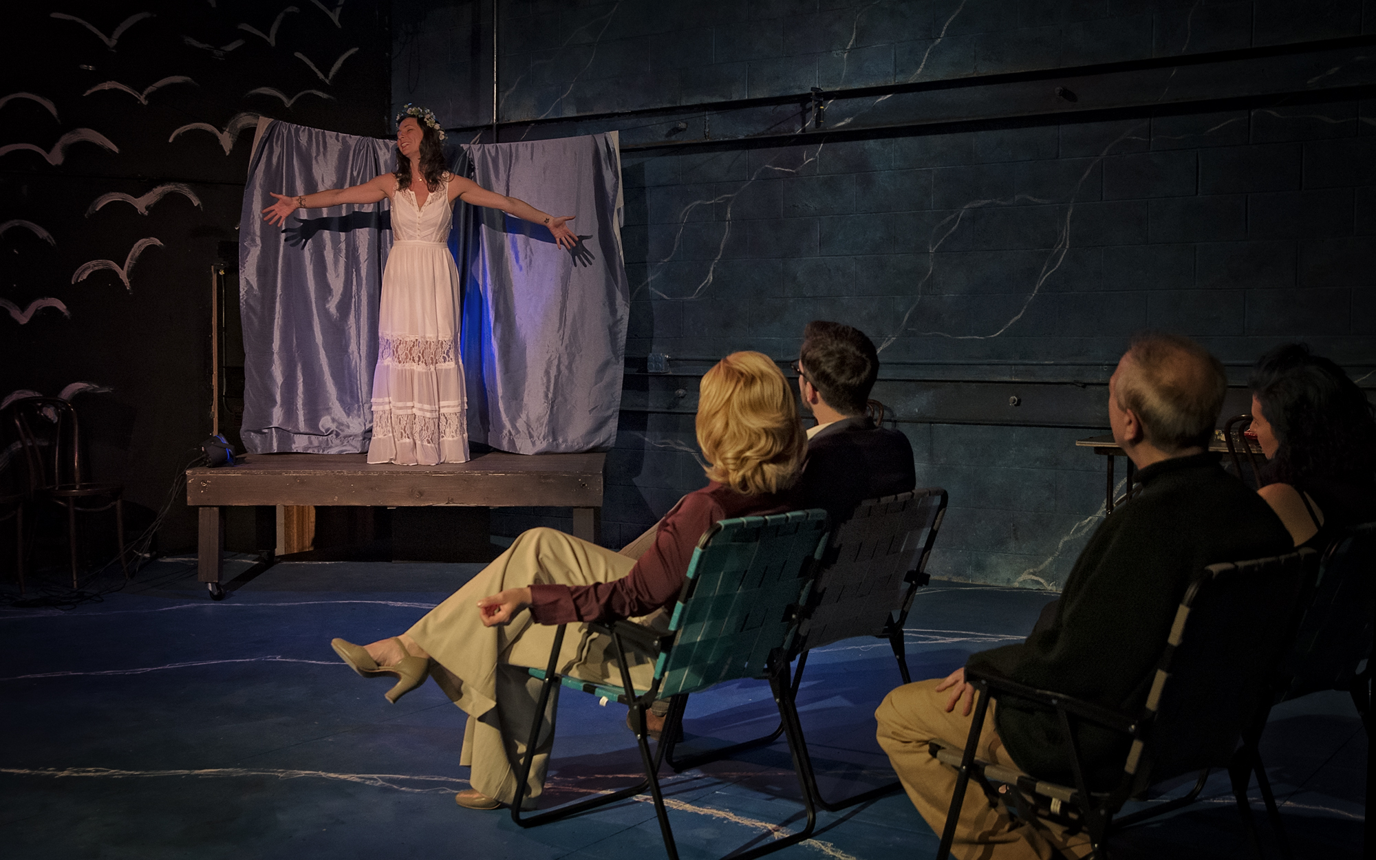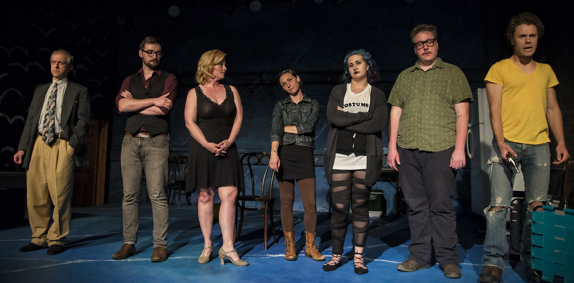 The story revolves around a tortured playwright and six related characters suffering from unrequited love and bursting with existential angst. Each of them is individually fixated on objects of affection that are already spoken for by other characters in the play. Characters occasionally share their inner thoughts explicitly or break the fourth wall by encouraging audience participation. Self-reflexive moments abound, questioning the value of art and address the inherent challenges of creative endeavors. This rollercoaster-esque meta-play successfully takes on many styles and tonal shifts. The scenes can switch from quietly pensive to emotionally raw to boisterously funny within an instant. The production features inventive directing, tight performances and the abstract set design expands beyond the stage onto the walls of the theater.